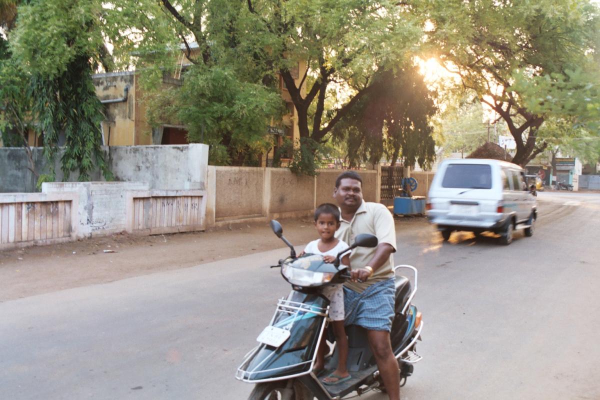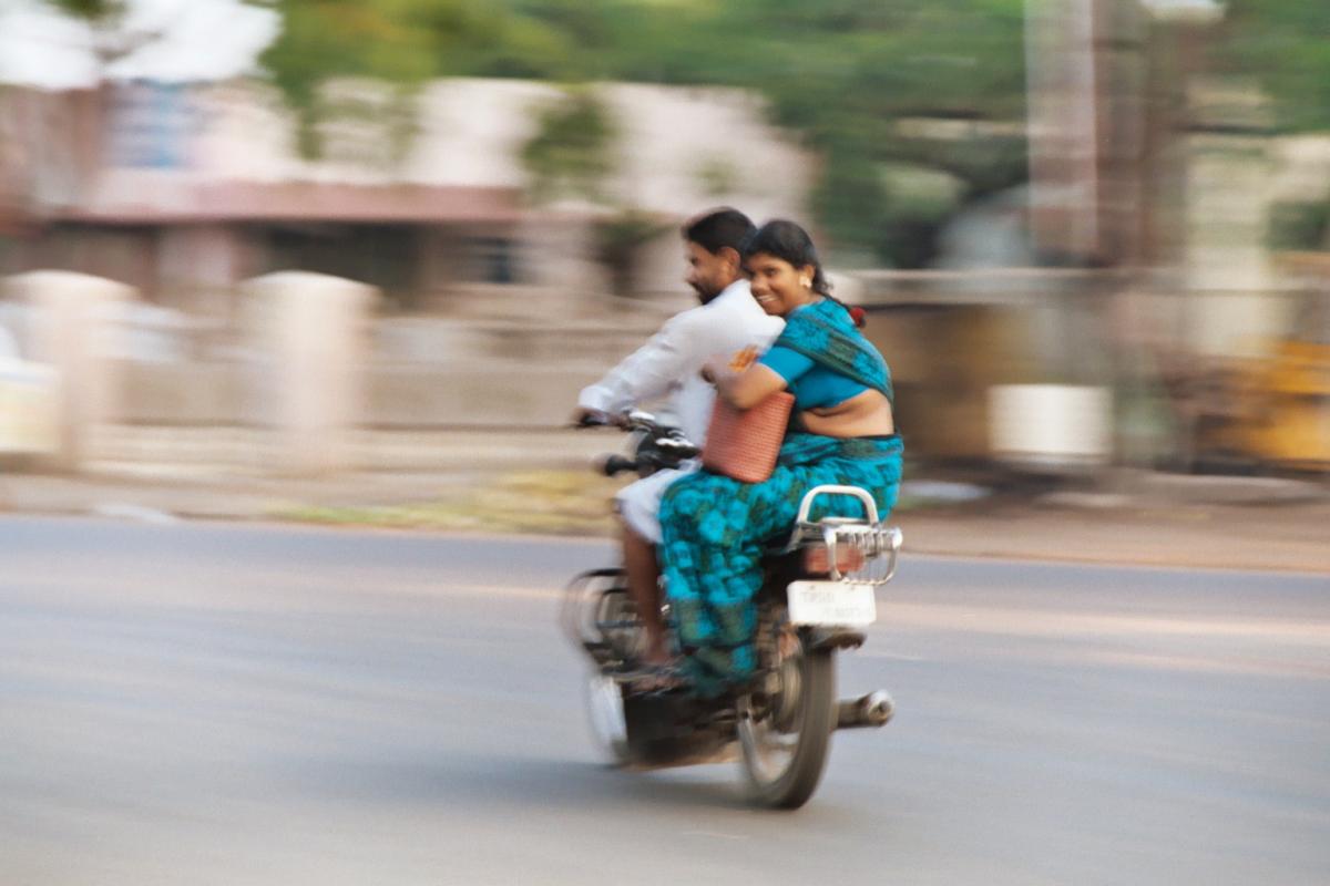I captured this couple as they zipped by on their motorcycle. A very common sight.