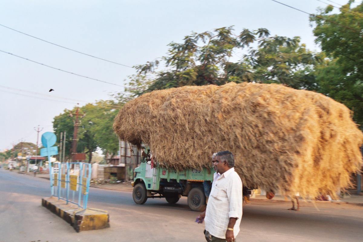 Not quite the hay trucks we are used to with tightly packed bales of hay. However, this is how hay is transported in the region.
